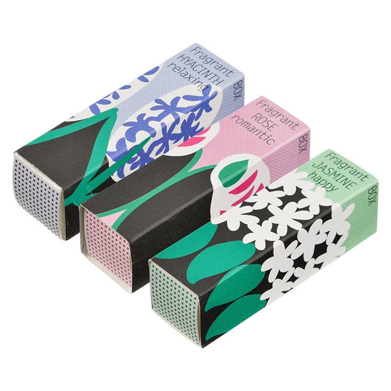 ほぼ日手帳のマス目にぴったり合う5種類のサイズのフィルムふせん。花が描かれた台紙についています。