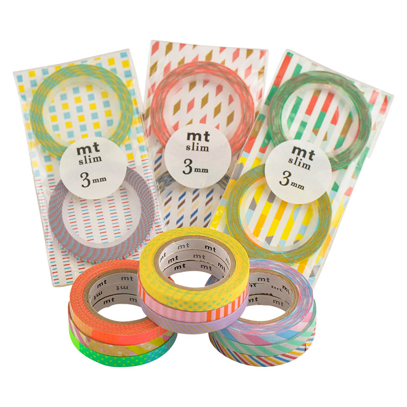 手帳と携帯するのに便利な細身のマスキングテープです。3種類から選べます。
