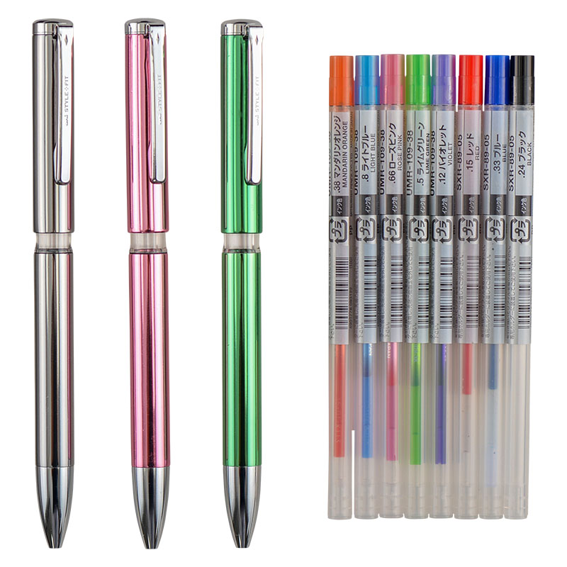 書いた文字をこすって消せるフリクションシリーズの極細ボールペンのセットです。