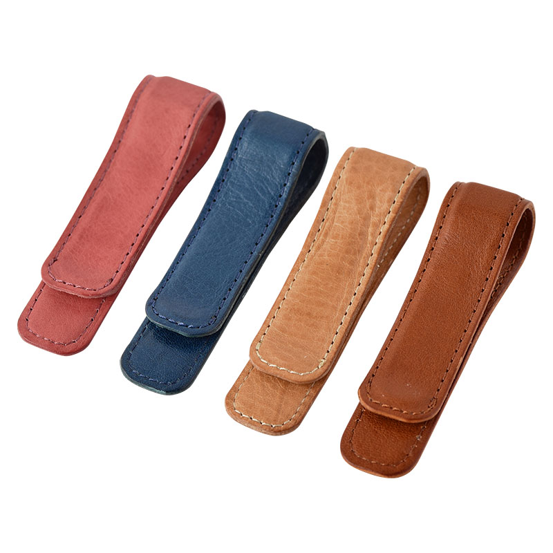 手帳の表紙に装着して使えるナチュラルレザーのクリップ。オリジナルやカズンにも使えます。