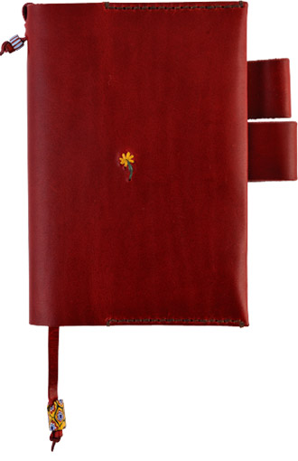 カバーのステッチは、ナチュラルなこげ茶と麻色。