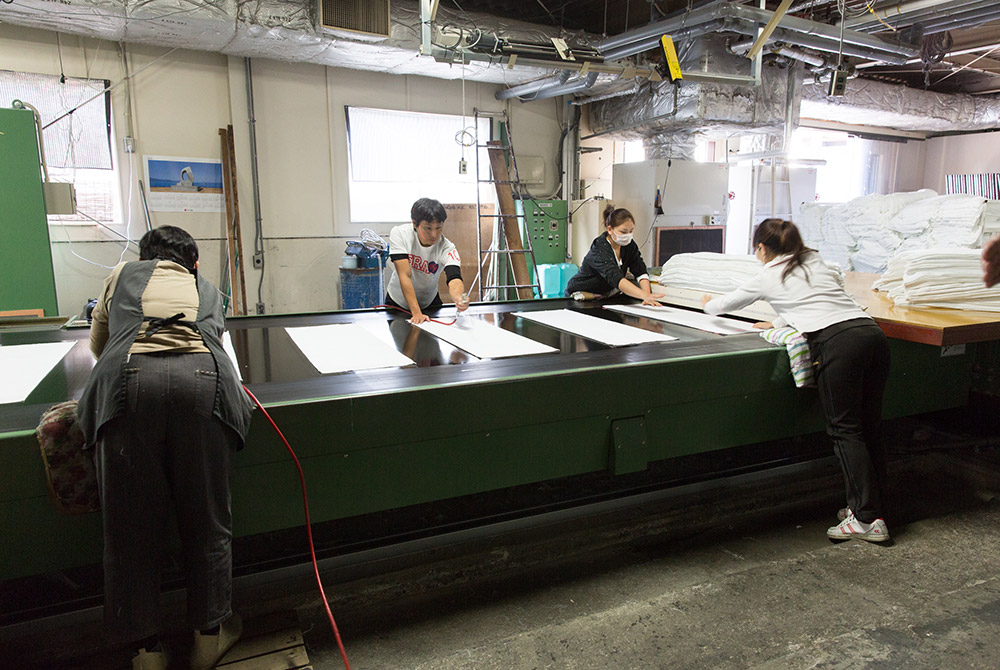 ▲最終工程はこの工場で。たくさんの人が丁寧に仕事をすすめています。