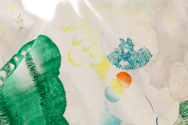 テキスタイルデザインは、大きな紙に描いた絵を