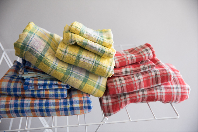チェック柄は、「やさしいタオル」がうまれた当時から