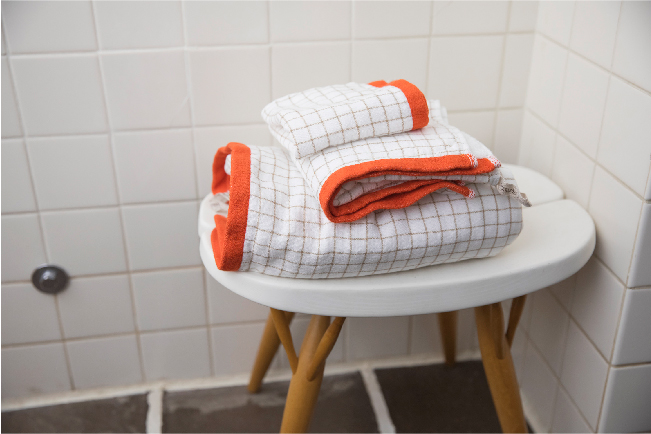 方眼紙のように規則正しくプリントしたタオルをつくりました。
