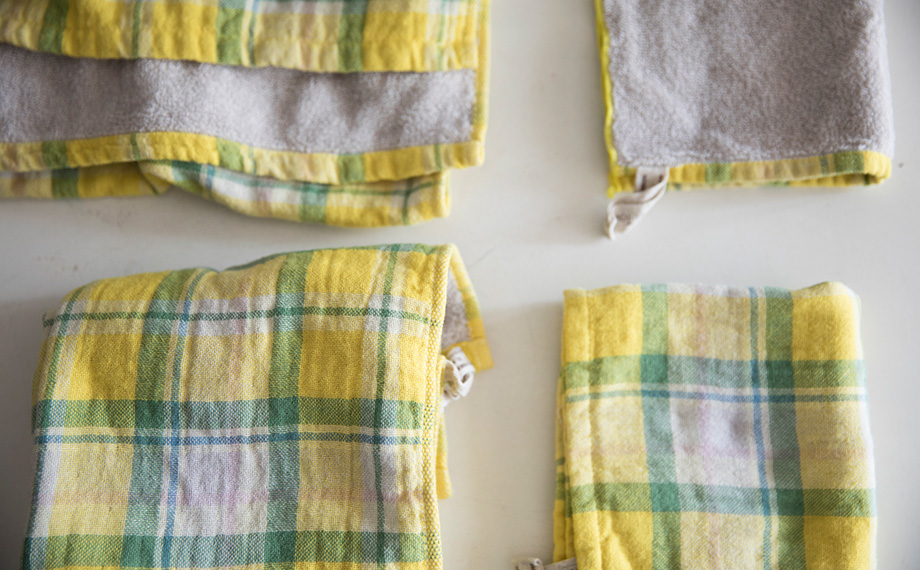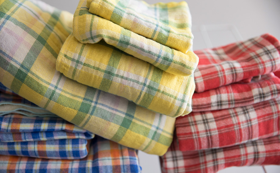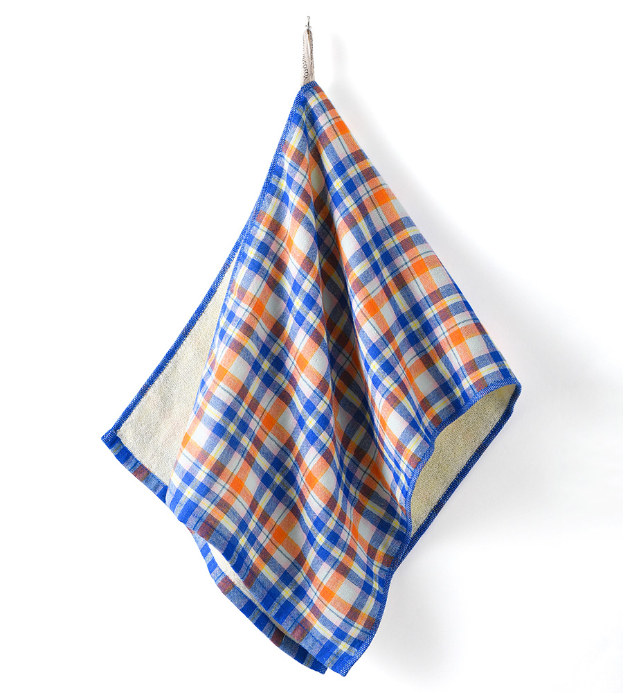 マリンブルー、ピンク、オレンジ、きいろの糸で