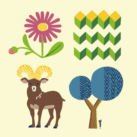 いくつかのどうぶつや植物の柄のオリジナル文房具を、