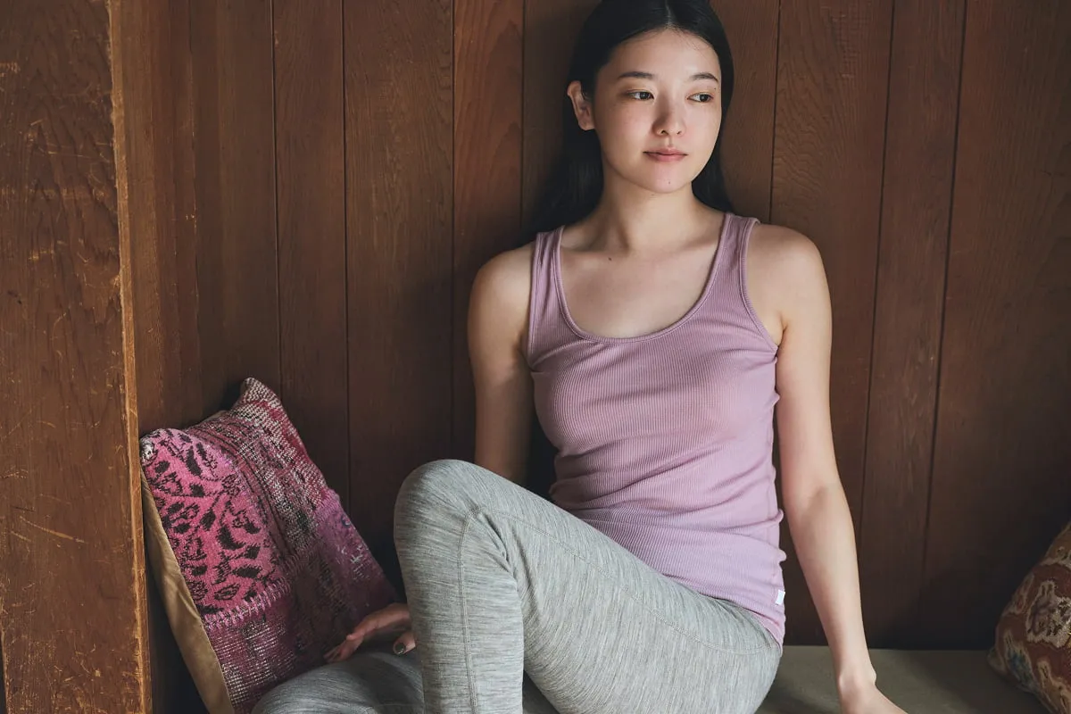 さゆり 洗濯機で洗えるのって、うれしいですよね。 こういう手触りのいいウールのインナーって、 お洗濯を間違えると縮んでしまったり 毛玉が気になったりするけれど、 気兼ねなく洗濯機で洗えるなって思います。