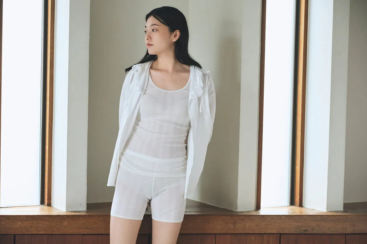 佐久間 なので、FILIPPAのアンダーシャツを 真夏のTシャツの下に一枚着るだけで、 快適さが段違いです。 今回は3分丈ショーツも取り扱ってくださっていて、 通常はショーツを穿いて その上からこれを重ねるんですが、 私は気持ちよさ優先で直穿きしています。