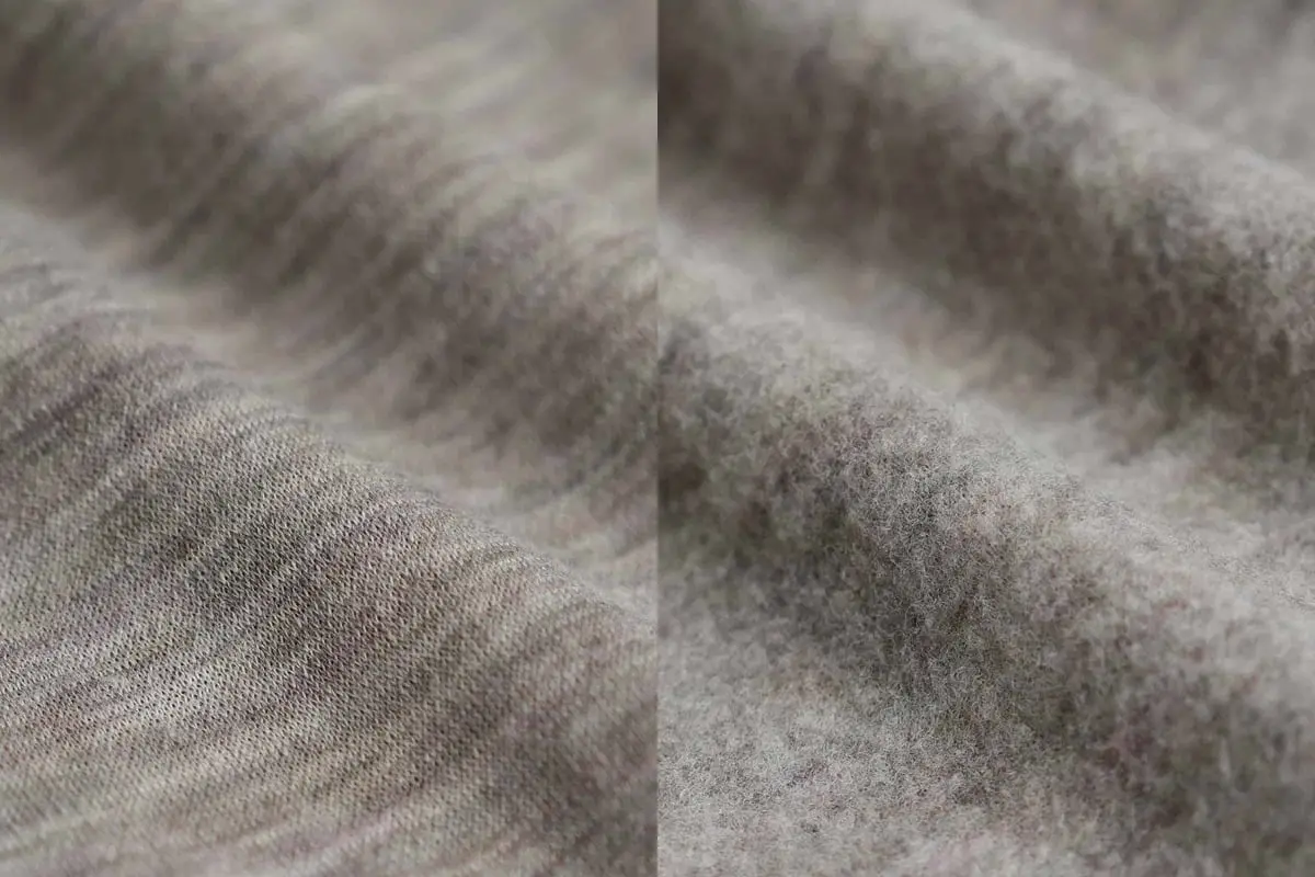 佐久間 最高級メリノの18、19ミクロンという 細い糸で紡績しているからですね。 なので、とろんと肌に溶け込むような 独自の着心地になるんです。 あとは、メリノウールは天然のエアコンとよばれていて、 心地よい体温を保つ性質があるんです。