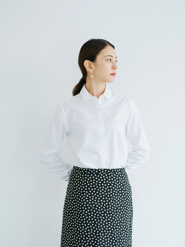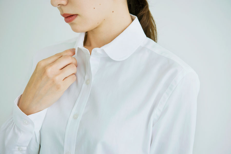 コットンのレディス丸衿シャツです。