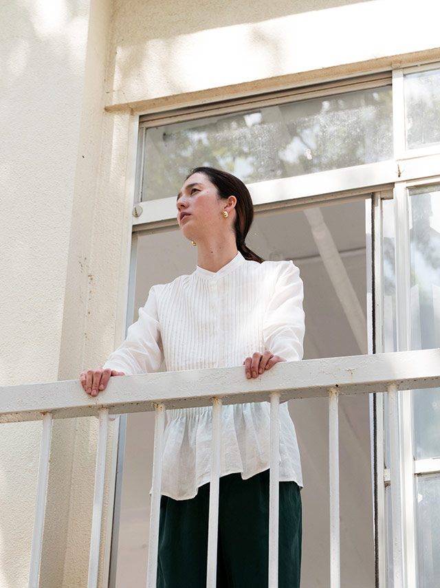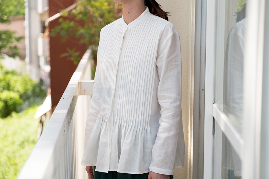 STAMP AND DIARY リネンのピンタックブラウス(F)