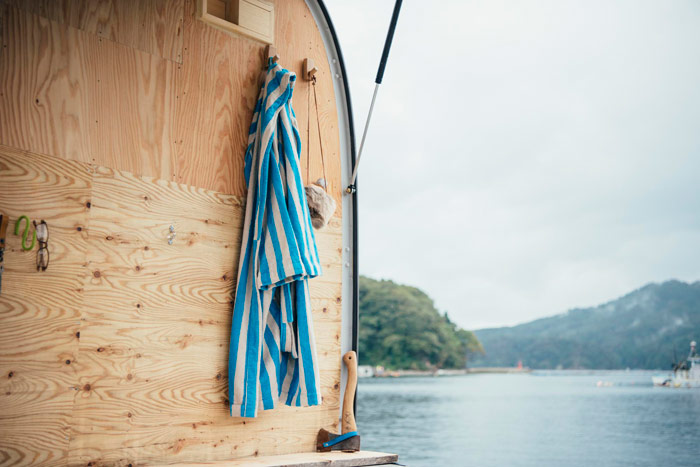 ▲「つなかん」の漁船が停まる鮪立(しびたち)湾に、サウナトースターを置かせていただきました。