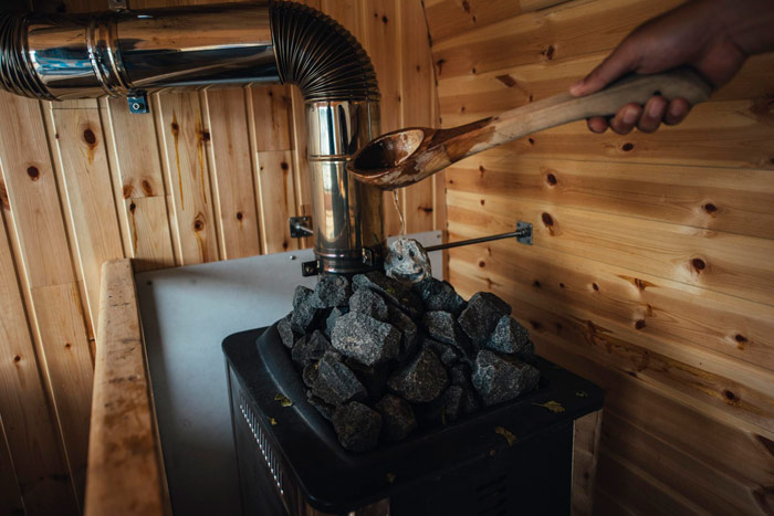 ▲サウナストーンはフィンランドの「かんらん岩」を使用。