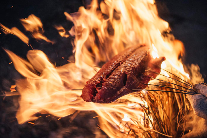 ▲スペアリブを焼いているところ。
