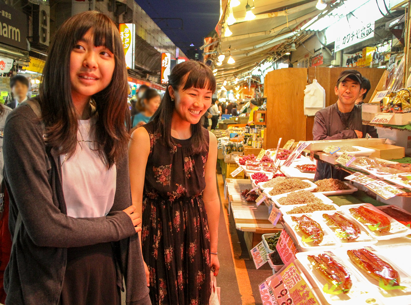 目にとびこんでくる、果物、魚、乾物に、お菓子。