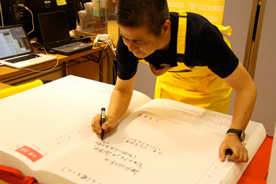 ▲神戸ロフトの巨大ほぼ日手帳に糸井重里が一筆書きました。