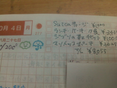 とりあえず手帳に記入しています。