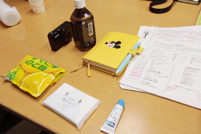 ▲大図さんが机の上に置いていたものはこの6つ。デジカメ、黒烏龍茶、