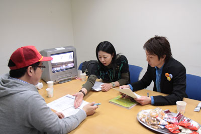いっしょにビデオを見ながら進行の打ち合わせ。