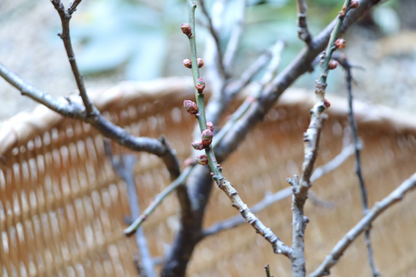 ▲ワークショップに使用する梅。ぷっくりとしたつぼみから、いまにも咲きそうな生命力を感じます。