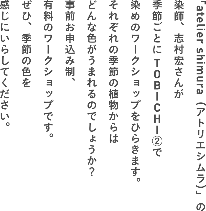 藍や臭木、クチナシなど、染料になる植物の栽培も手がける。