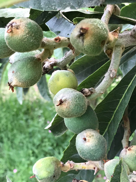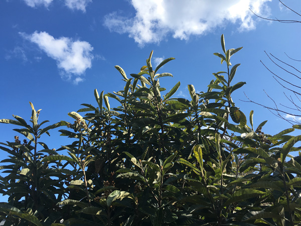 ▲いきいきとした緑色の、枇杷の葉っぱたち。