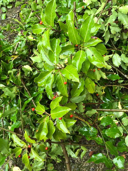 ▲赤い実をつけた冬青の木。10月~11月ごろに実をつけます。