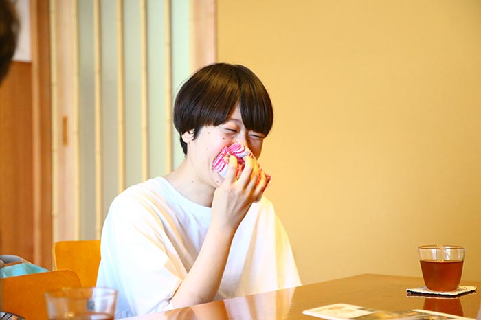 ニュニュニューっと、幼虫が出てきて‥‥。