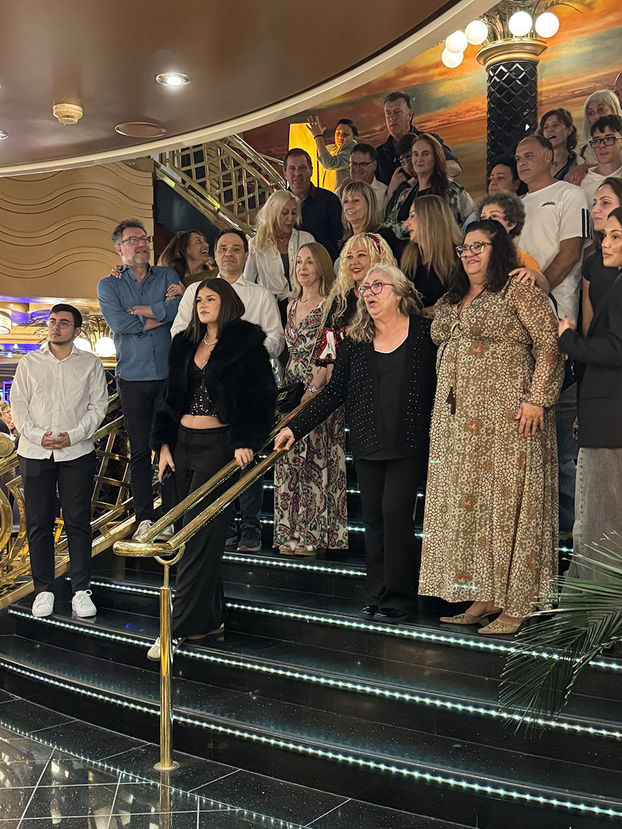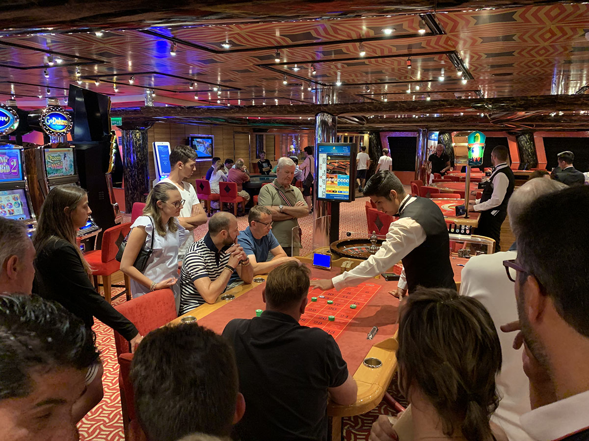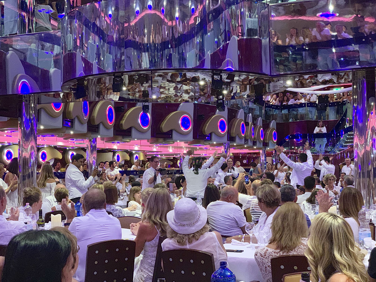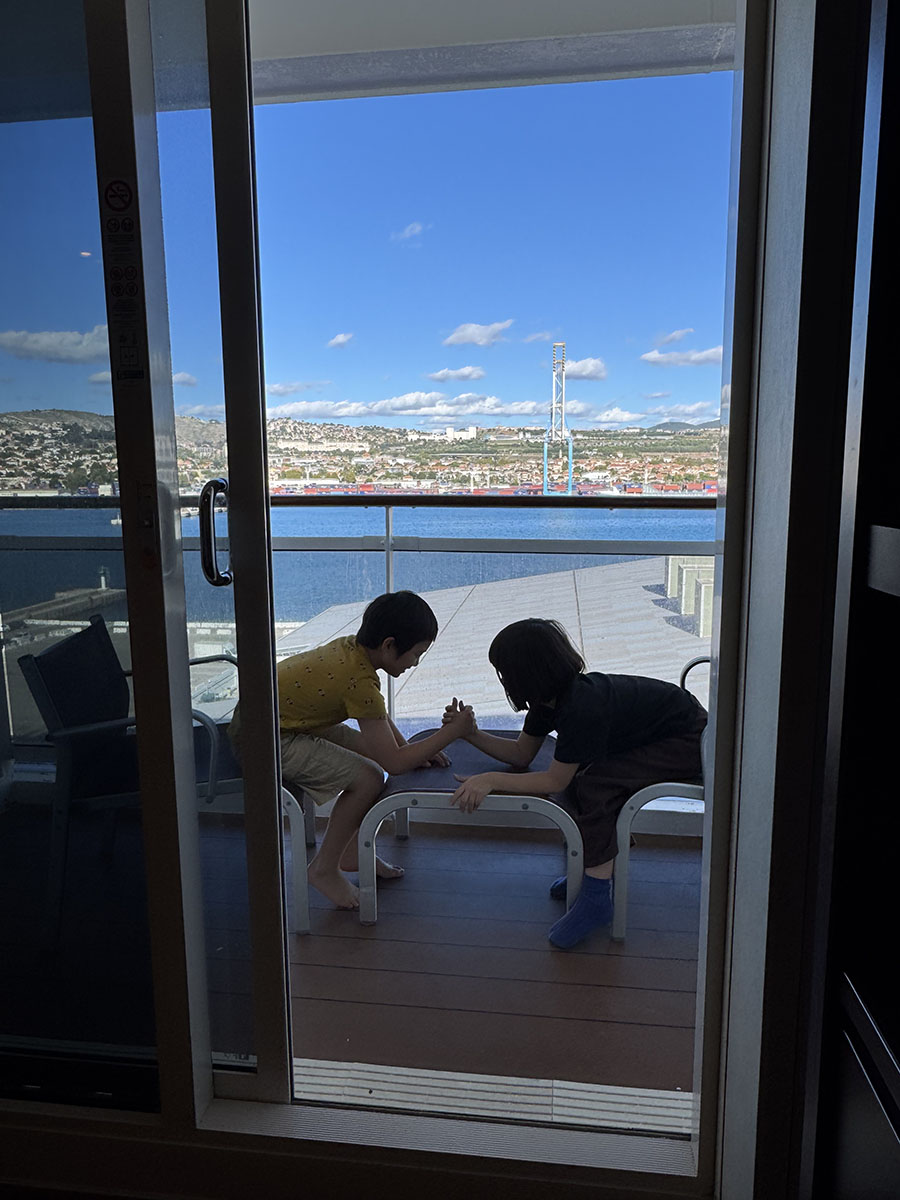 朝7時とか8時に、寄港地に到着。 寄港先で観光をしてもよし、 もちろん、ほとんどの人が観光に出かけますが、 あちこちに写真撮影スポットがあったり、 夕方ごろ、船は再び全員を乗せて出発して、 昼間の観光で張り切って歩き回って、 ダンス教室、ヨガ教室、筋トレ教室、 さらに船の中とは思えないほど立派な劇場では、 子どもたちはキッズクラブ
