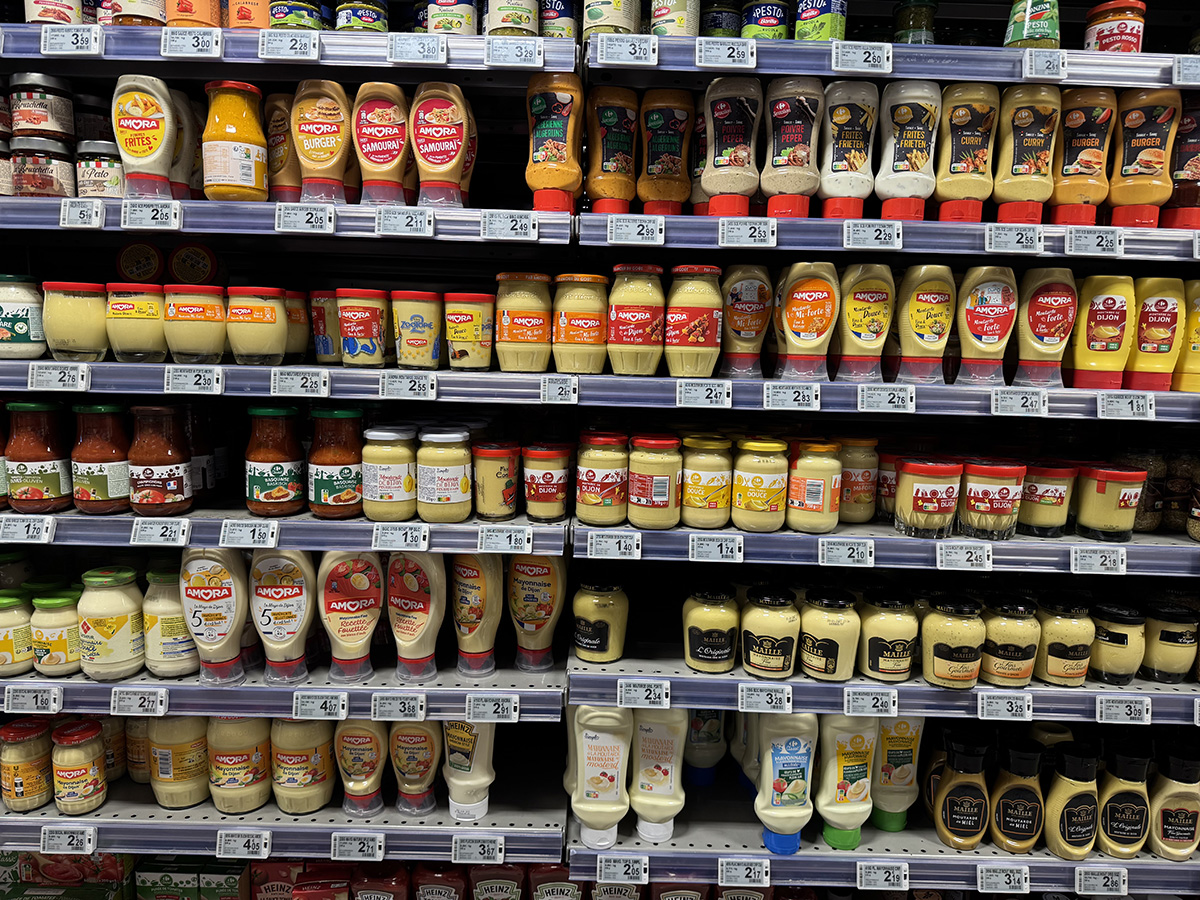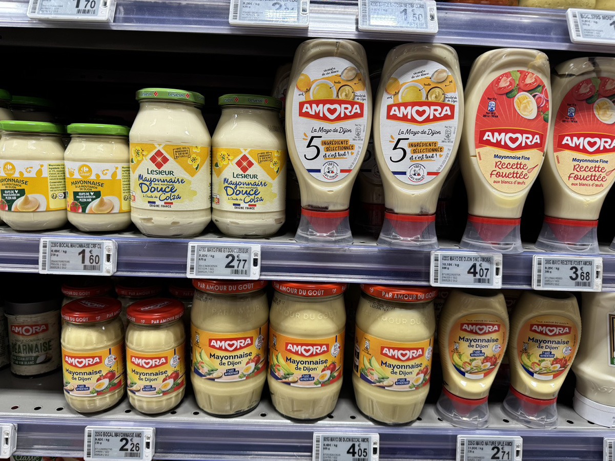 フランスのスーパーのマヨネーズ、マスタード、