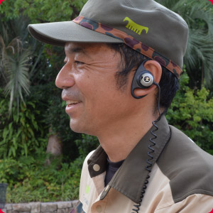 ▲ミグノンの犬たちといっしょに。鳥男は路上で保護されたため、
