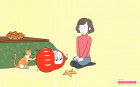 秋元机さんの不定期連載マンガ「大きいほうと小さいほう」49話のひとコマです。クリスマスと正月がいっしょにやってきたような、おめでたい壁紙をどうぞ。